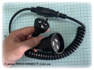 Australian 3 Pin Plug to IEC Female C13 Curly Cord.